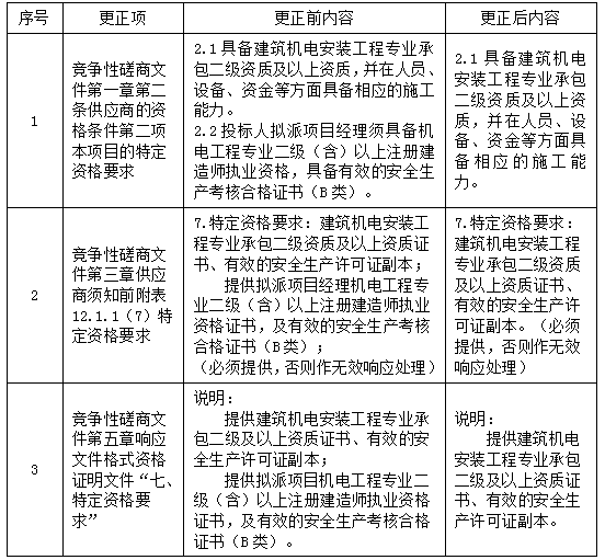 更正事項(xiàng):競(jìng)爭性磋商文件