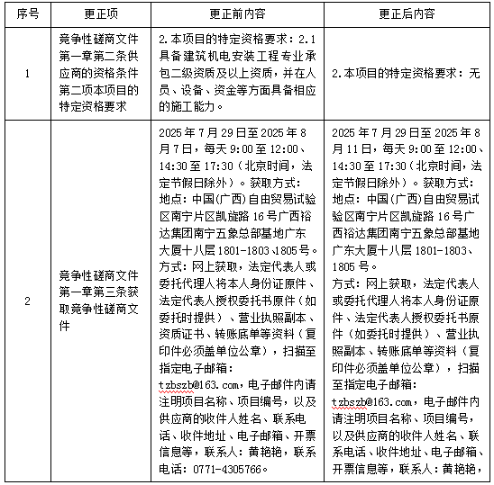 更正事項(xiàng):競(jìng)爭(zhēng)性磋商文件