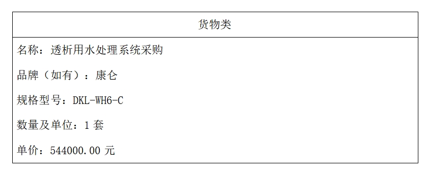 二、項(xiàng)目名稱:透析用水處理系統(tǒng)采購